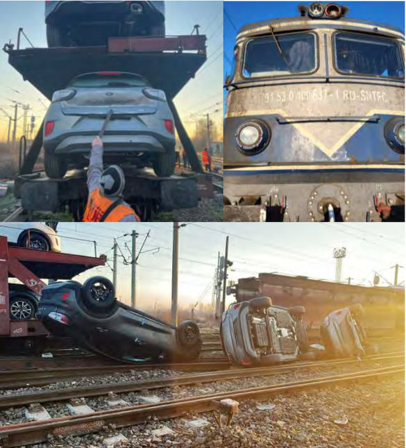 ″3 autoturisme care erau încărcate pe platforma superioară a celei de-a doua unități, a penultimului vagon din compunerea trenului de marfă (...), s-au răsturnat în gabaritul de liberă trecere al liniilor nr. 4 și nr. 5 din stație și alte 103 autoturisme din încărcătură au fost avariate″, se arată în raportul de investigare a accidentului întocmit de Agenția de Investigare Feroviară Română (AGIFER), finalizat după circa un an de la accident.