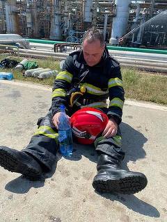 FOTO VIRAL Pompieri prăbușiți de efort la explozia de la Rafinăria Petromidia