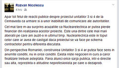Reacția ministerului vine după ce Fondului Proprietatea, acționar minoritar al Nuclearelectrica, a afirmat public că proiectul construirii reactoarelor 3 și 4 de la centrala nucleară de la Cernavodă, dezvoltat de Nuclearelectrica în parteneriat cu China General Nuclear Power, este nefezabil și ar putea crea mari prejudicii acționarilor companiei în cazul în care este continuat.