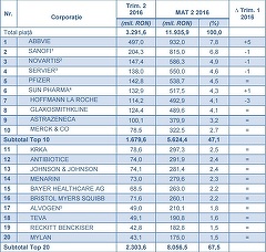Lărgirea utilizării tratamentului pentru hepatită a readus pe creștere vânzările de medicamente din România în trimestrul al doilea, cu un avans de 16,3% comparativ cu perioada similară din 2015, până la 3,29 miliarde lei (731,8 milioane euro) la preț de distribuție, și a schimat liderul acestei industrii. Astfel, compania americană Abbvie a urcat de pe locul 5, în primul trimestru, pe primul loc la finalul lunii iunie, cu o cotă de piață de 7,8%.