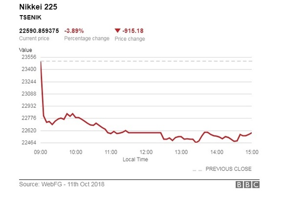 Una de șoc s-a propagat către Asia, unde indicele Nikkei 225 de la Tokyo s-a depreciat cu 3,89%, iar indicele Hang Seng a alunecat cu 3,75%. Amplitudini ale scăderilor încă și mai mari, de 4-6%, au avut acțiunile listate pe bursele Chinei de la Shanghai și Shenzen.