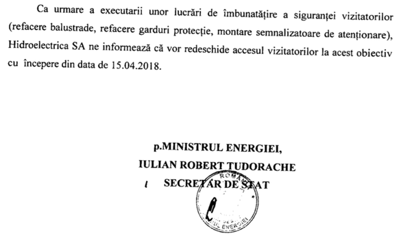 La începutul acestui an, Hidroelectrica a informat însă ministerul de resort că efectuat o serie de lucrări pentru îmbunătățirea siguranței vizitatorilor, prin refacerea balustradelor, gardurilor de protecție și montarea unor semnalizatoare de atenție, astfel încât turiștii vor putea vizita din nou statuia lui Prometeu începând cu 15 aprilie anul acesta.