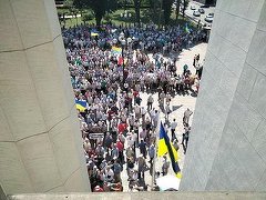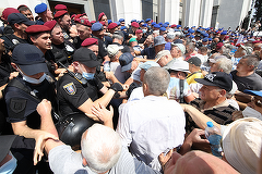 FOTO Sute de foști polițiști au luat cu asalt Parlamentul de la Kiev, pentru pensii