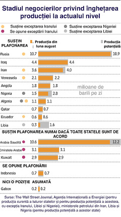 Prețul benzinei și motorinei din perioada următoare, dar și cotațiile companiilor petroliere ar putea depinde de succesul negocierilor preliminare de miercuri dintre statele membre ale cartelului OPEC, menite a reduce nivelul producției la nivelul cartelului cu un milion de barili pe zi începând cu luna noiembrie, când este programată o nouă reuniune OPEC. Decisivă va fi confruntarea dintre Iran, care solicită o derogare de la plafonarea producției, și Arabia Saudită, care se opunea inițial acordării unei astfel de excepții rivalului său economic și politic.