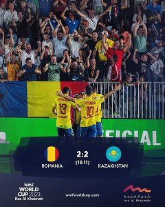 Echipa României de minifotbal este în premieră campioană mondială la minifotbal, în urma unei victorii dramatice la penalty-uri în fața Kazahstanului, după ce a fost condusă cu 2-0, revenind în ultimele minute ale meciului.