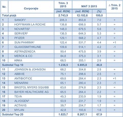 Reducerea prețurilor la medicamentele eliberate pe bază de rețetă, aplicată la 1 iulie, a determinat o scădere cu 9,9% a valorii pieței farmaceutice în trimestrul al treilea, față de cel anterior, la 2,74 miliarde lei la preț de distribuție, conform rezultatelor studiului Pharma & Hospital Report realizat de Cegedim.