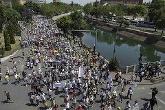 Sindicaliștii din Educație au anunțat, după discuțiile care au avut loc la Guvern, că acțiunile de protest continuă. Sindicaliștii adunați în Piața Victoriei pleacă în marș spre Palatul Cotroceni.