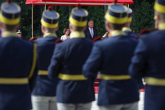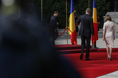 Președintele Republicii Moldova, Maia Sandu, a fost primită cu onoruri militare de președintele Klaus Iohannis, vineri, la Palatul Cotroceni.