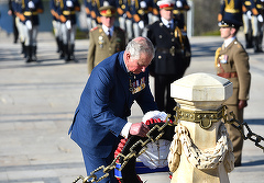 Prințul de Wales al Marii Britanii a depus o coroană de flori la Mormântul Ostașului Necunoscut din Parcul Carol și a semnat în cartea de onoare, în prima zi a vizitei oficiale pe care o face în România.