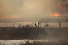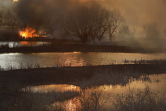 Un incendiu de vegetație a izbucnit în Delta Văcărești.