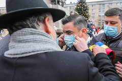 GALERIE FOTO Primarul din Iași, atacat și stropit de un protestatar cu iaurt