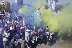 Un protest organizat de Blocul Național Sindical (BNS) are loc în fața sediului Guvernului.