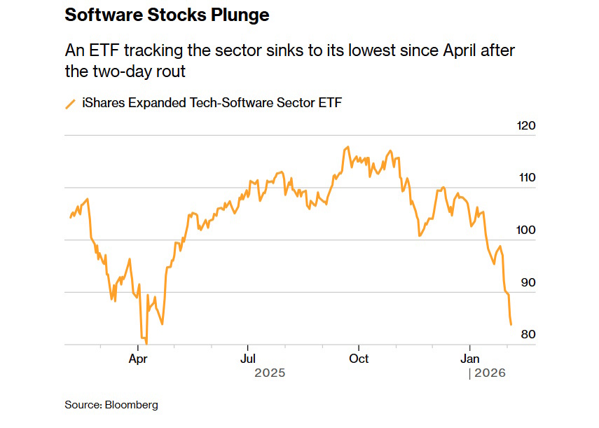 Acțiunile companiilor de software s-au aflat în epicentru, scăzând atât de mult, încât valoarea companiilor urmărite într-un ETF iShares s-a redus cu aproape 1 trilion de dolari în ultimele șapte zile.