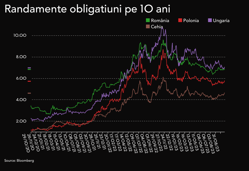 Evoluția este similară celei din regiune, unde randamentele sunt în creștere în ultima lună și jumătate. Față de toamna anului trecut, randamentele sunt însă substanțial mai mici.