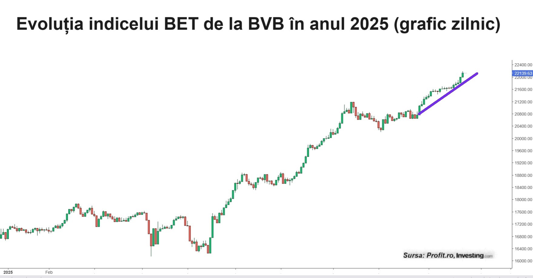 Este contextul pozitiv în care și la BVB investitorii au menținut traiectoria pieței în sensul trendului prevalent multiascendent. Indicele compozit BET-XT a avansat cu 0,91% și indicele reprezentativ BET a urcat cu 0,79%, până la un nou maxim istoric, de 22.314,17 puncte.