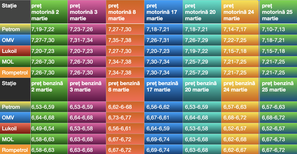 Ultima zi cu scumpiri în stațiile OMV Petrom a fost pe 8 martie. De la acea dată, prețul motorinei a fost redus cu 17 bani/l, iar cel al benzinei cu 5 bani/l.