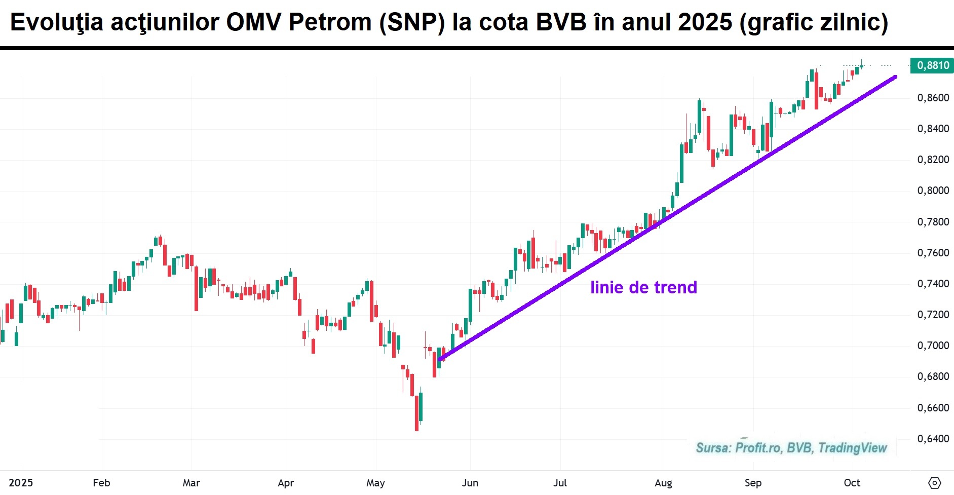 Casa de brokeraj a retrogradat acțiunea cu simbolul SNP la “păstrează“ de la “cumpără“, prețul-țintă fiind de 0,8800 lei/acțiune, apropiat de cel din piața secundară de la BVB.