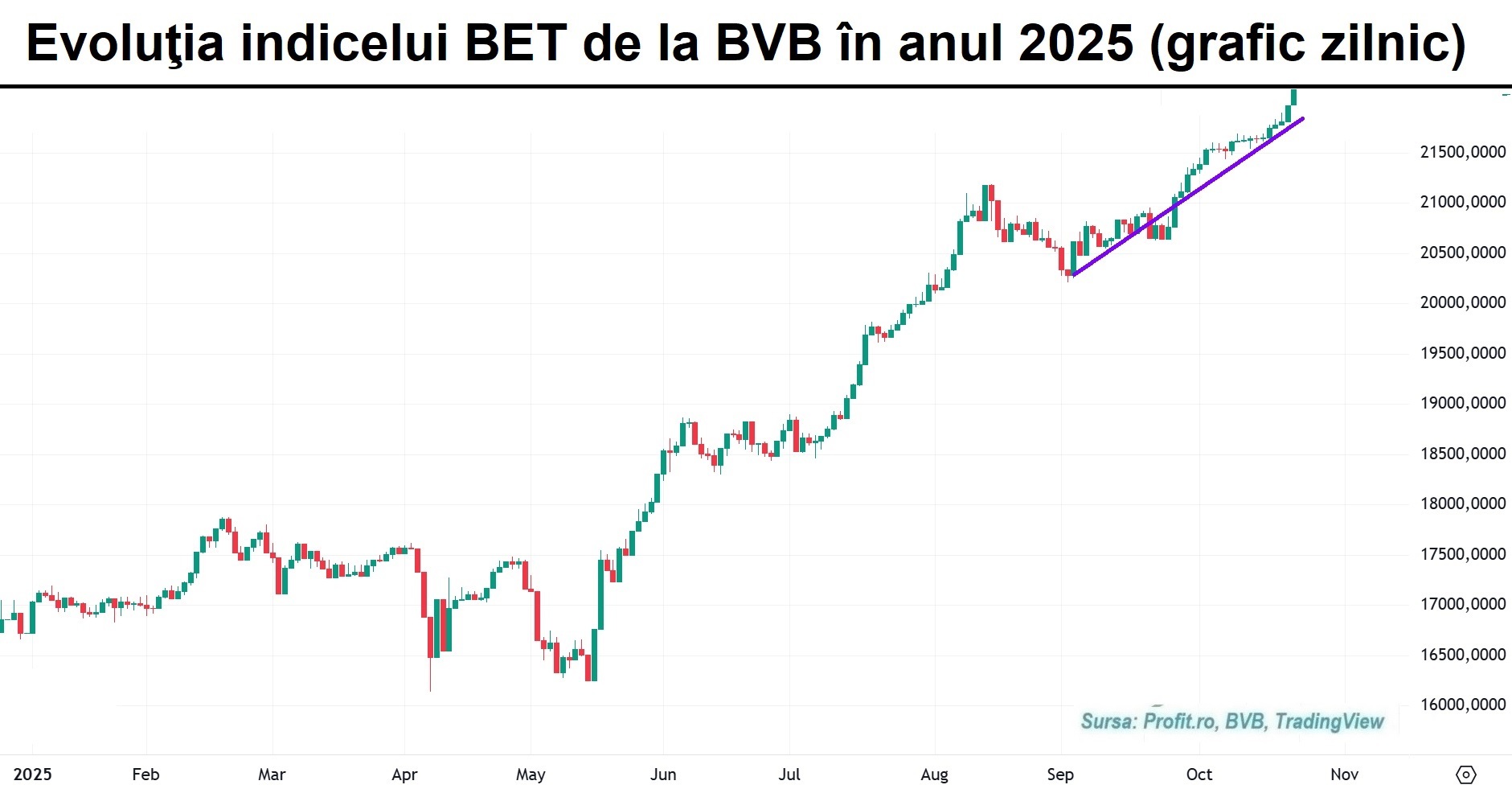 Pe marile burse ale lumii, ziua de tranzacționare a fost predominant de marcare de profituri după raliul furibund recent. Aceasta nu a împiedicat investitorii de la BVB să se poziționeze la cumpărare în direcția trendului prevalent ascendent și să împingă piața către noi culmi.