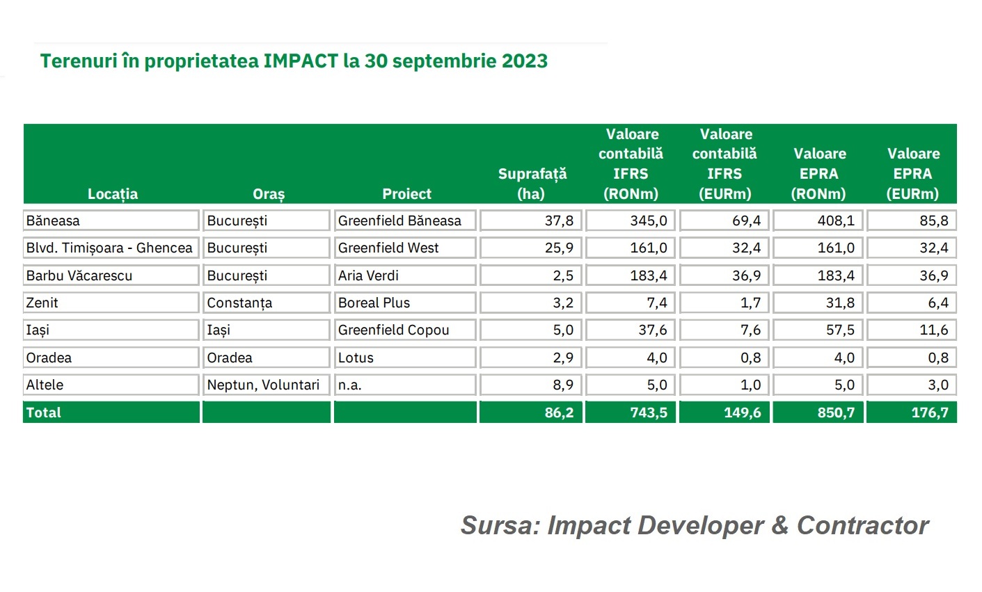 În intervalul menționat societatea a vândut unități locative în 6 complexe rezidențiale, incluzând și 3 apartamente în Greenfield Băneasa dezvoltat de Impact Developer & Contractor (IMP).