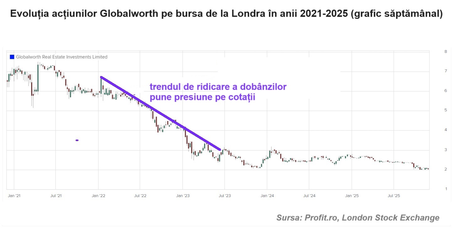 Globalworth, societate cu 56 de proprietăți în 9 orașe din Polonia și România, unde deține 1,3 milioane metri pătrați de birouri, se tranzacționează pe bursa londoneză cu un discount confortabil.