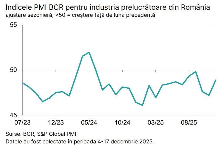 Indicele S&P BCR al managerilor de achiziții din industria manufacturieră a urcat de la 47,2 puncte la 48,9 puncte, cel mai ridicat nivel al ultimelor trei luni.
