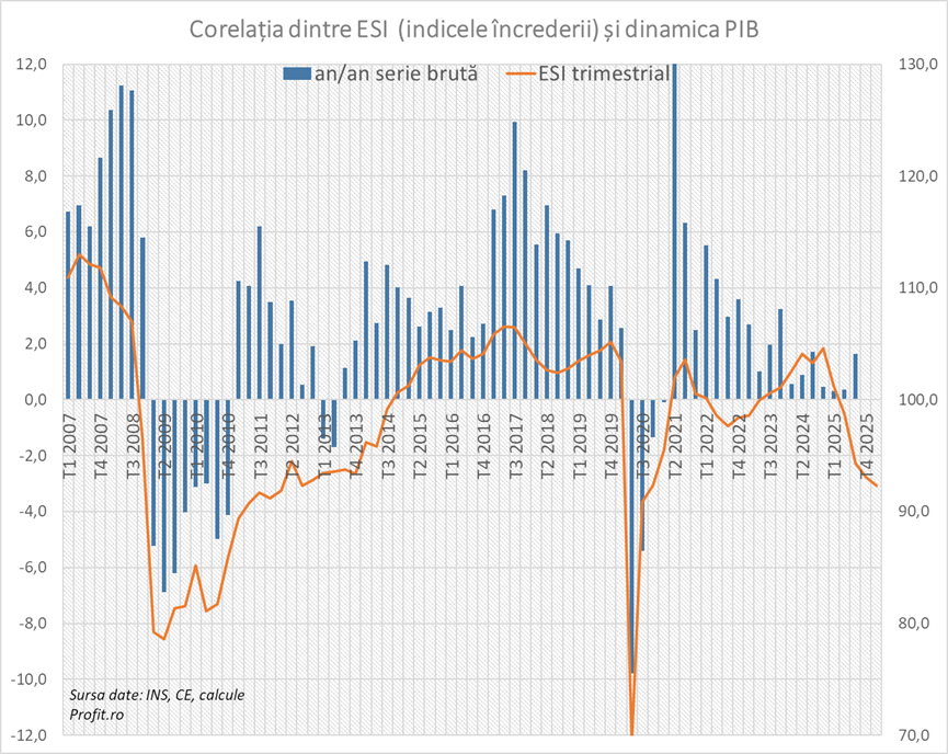 „Tabloul prezentat de ESI la începutul anului 2026 sugerează că există unele riscuri negative pentru previziunile noastre, mai ales dacă percepția consumatorilor nu se îmbunătățește pe parcursul anului”, arată analistul BCR Rareș Racoviță.
